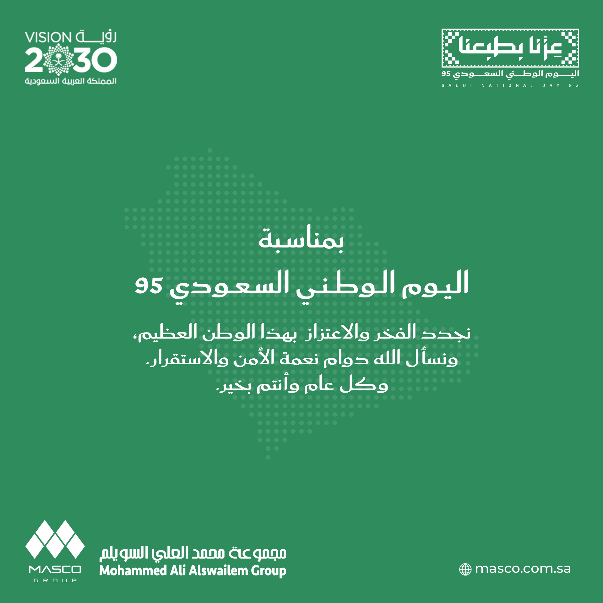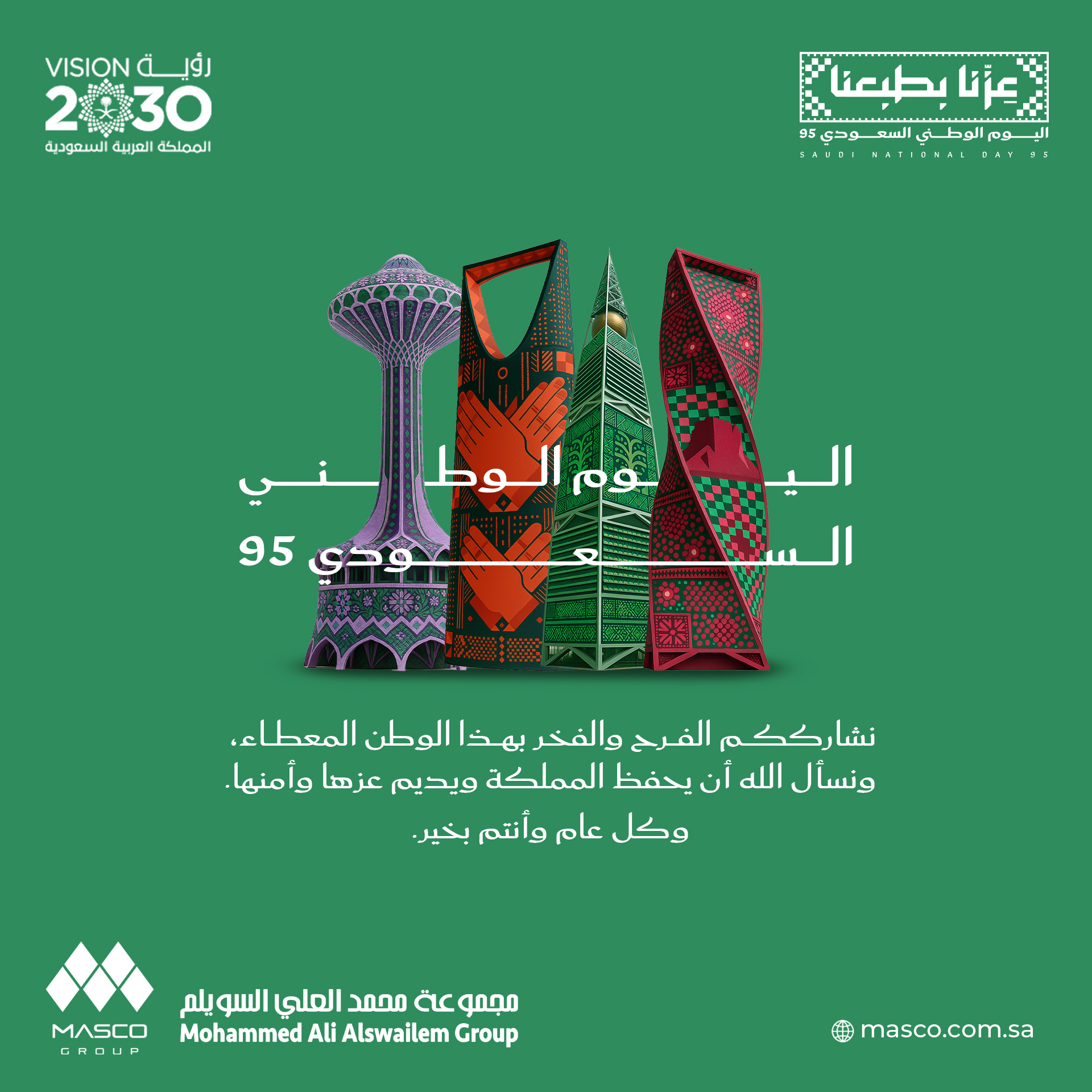 بأسمى التهاني والتبريكات بمناسبة اليوم الوطني السعودي الـ 95،
