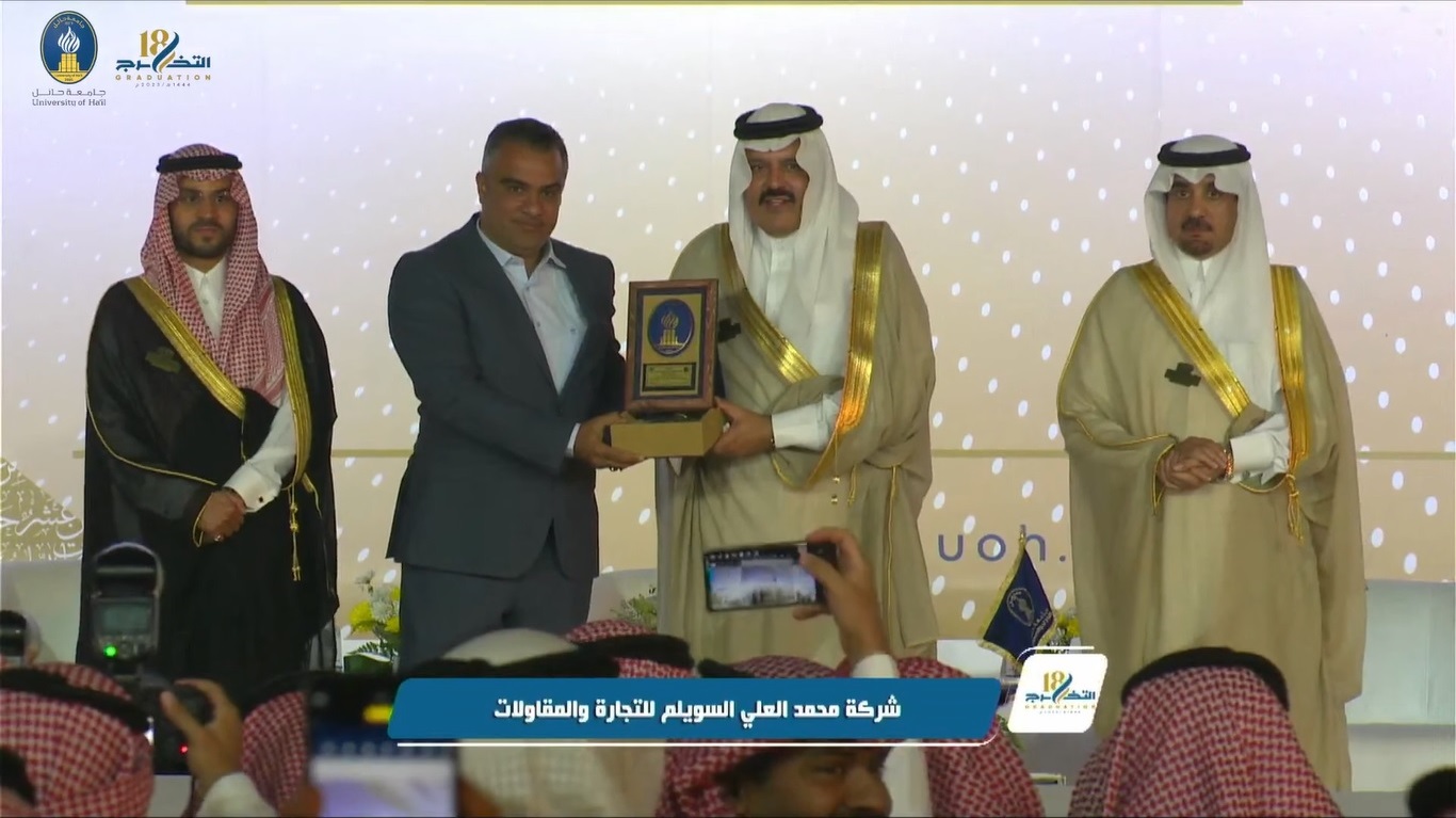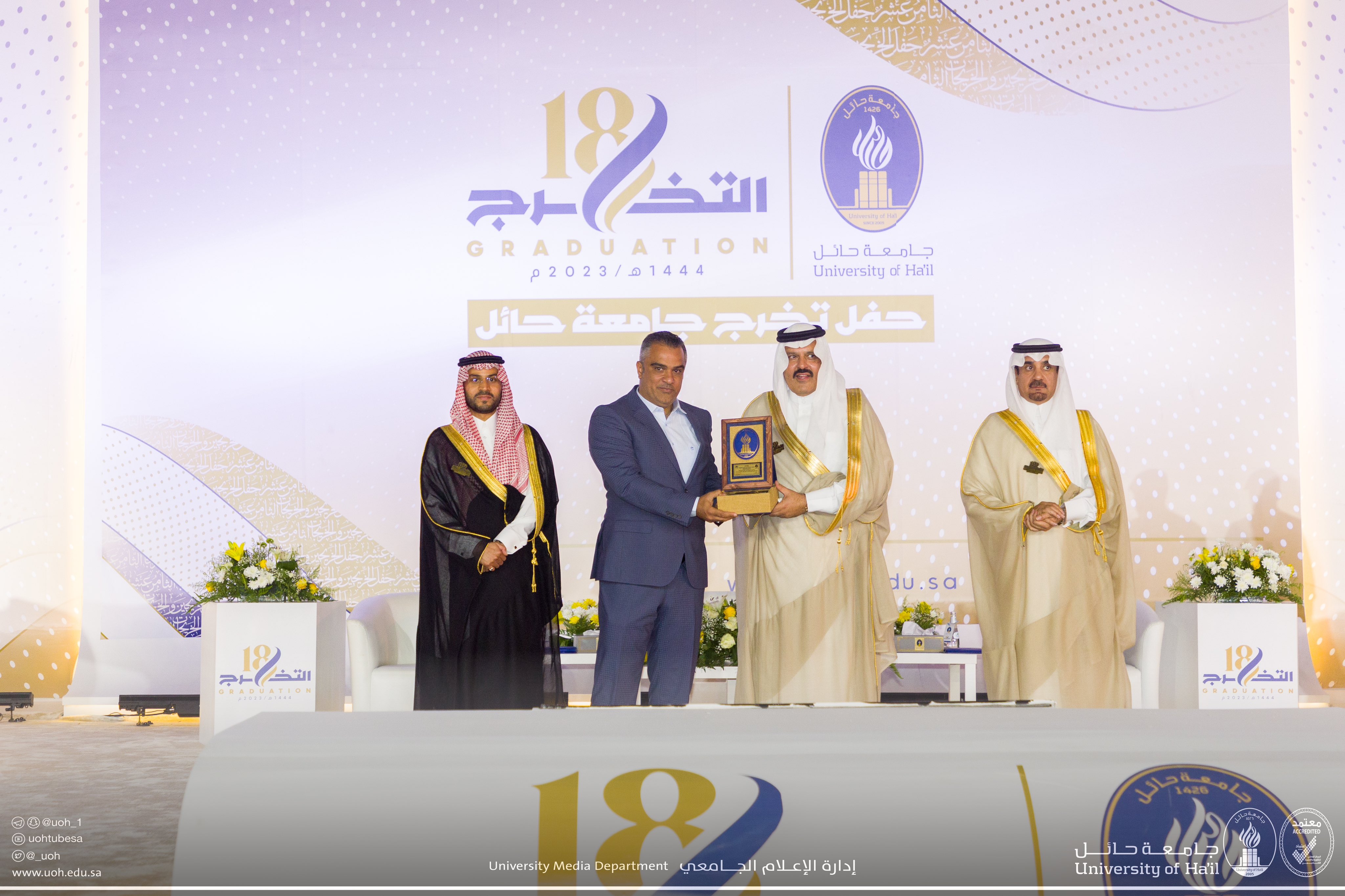 Yesterday evening, Prince Abdulaziz bin Saad bin Abdulaziz, Governor of Hail, honored MASCO at the graduation ceremony of the eighteenth batch of the academic year 1444 AH, in recognition of our efforts in organizing the ceremony through our infrastructure contracted with the university.