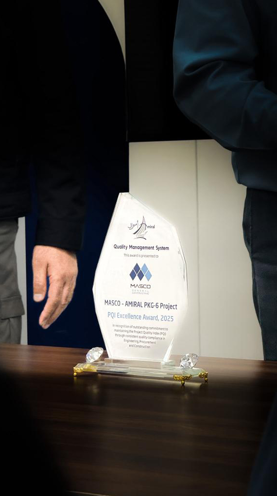 We are proud to share that MASCO Energy has been recognized as one of the AMIRAL EPC Packages awardees for Best Quality Management System, based on performance achieved on one of our active projects, where a high Project Quality Index (PQI) was successfully maintained throughout 2025.