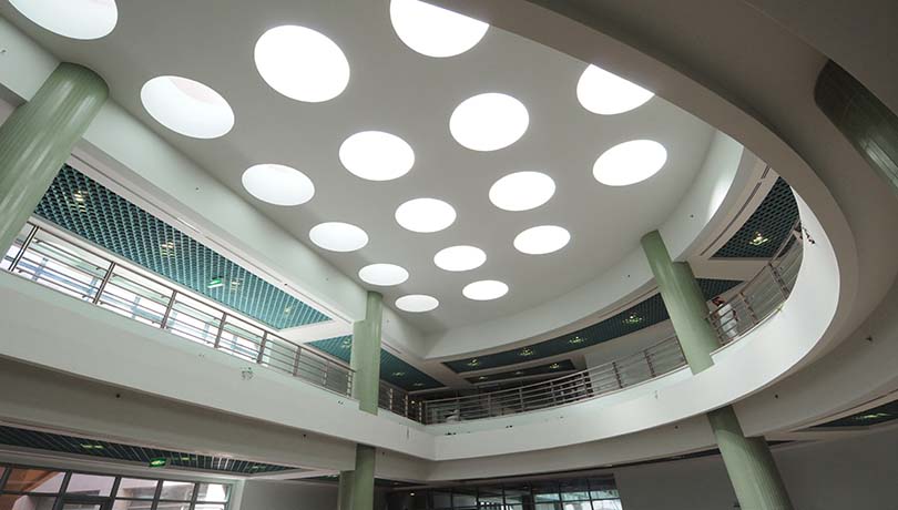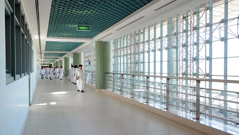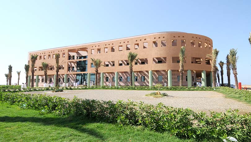 Construction of a state of art community college that includes Construction of three stories with an area of 35000 M². Full Automated electrical and mechanical works. Marble Exteriors cladding. Chilled A /C .Elevators