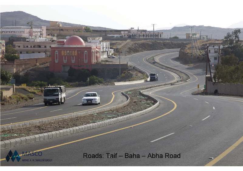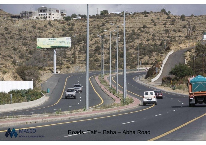 Construction of new two lanes and upgrade existing road including constructing of wadi bridges. Design of double lanes road that climbing high mountain. Construction of complete hydraulic structures including bridges, box culverts, slope protection as well as drainage pipelines Excavation of 5,000,000 m3 in hard rock using high power bulldozers and jack hammer and Rock blasting. Earthwork filling of 4,000,000 m3 including sub grade with achieving compaction of 100 %. Asphalt pavement that cover an area of 1,200,000 m2. Safety items including: pavement painting, cat eyes and sign board.